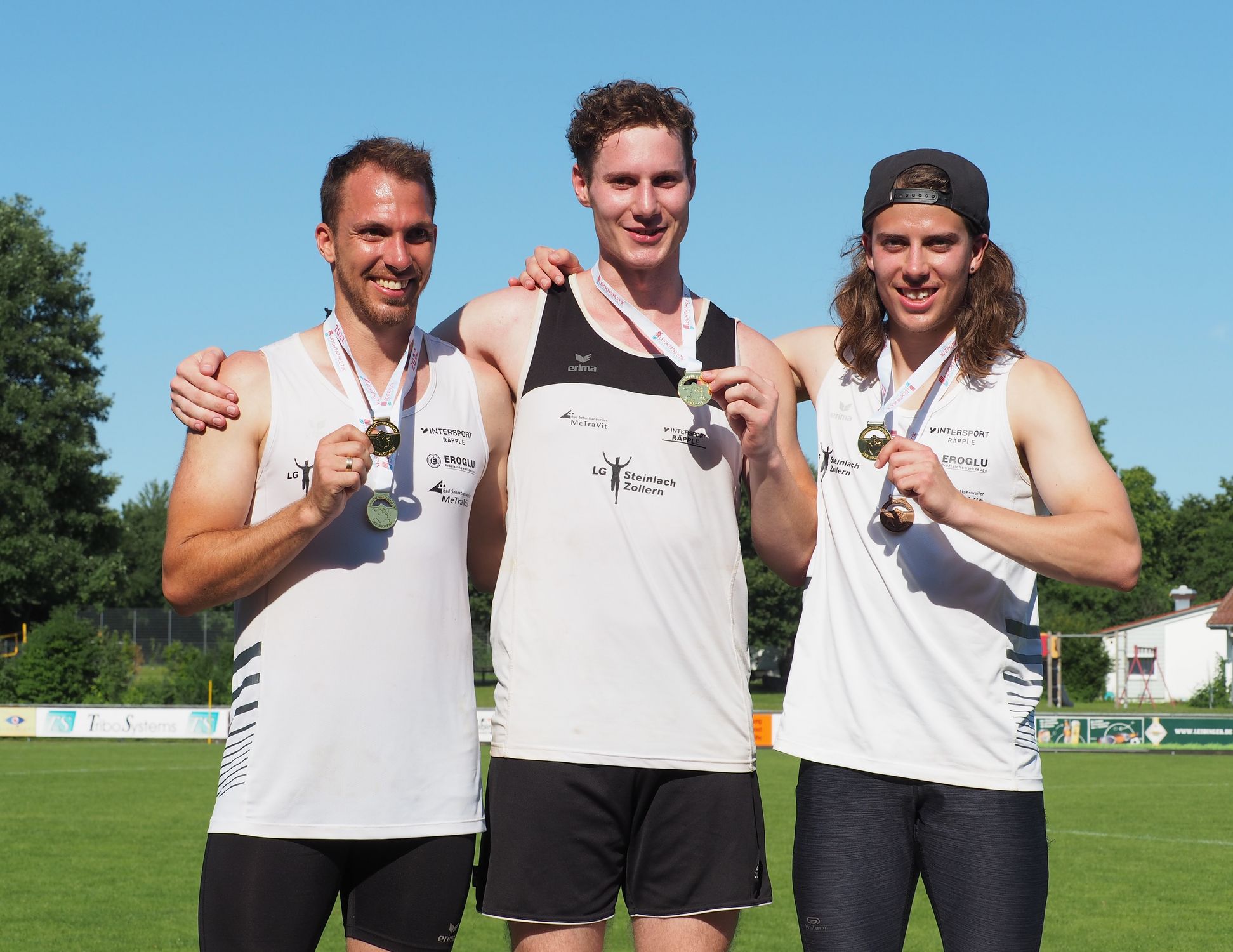 Der erste und der letzte Startschuss der Veranstaltung fiel für den Zehnkampf der Männer. Und nach zwei langen Wettkampftagen fand sich Titelverteidiger Christoph Ewinger (LG Steinlach-Zollern) ganz oben auf dem Podium wieder. 6.628 Punkte, die er unter anderem einem starken Stabhochsprung (4,40m) zu verdanken hatte, brachten ihm den Landesmeistertitel ein. Die Silbermedaille erkämpfte sich der Ulmer Dominik Petzold mit 6.394 Punkten. Und gleich in seinem ersten Jahr bei den Aktiven durfte sich Joshua Kommer (LG Steinlach-Zollern) über 6.225 Punkte und die Bronzemedaille freuen. Mit bereits zwei Podestplatzierungen in der Einzelwertung war den Mehrkämpfern der LG Steinlach-Zollern dann auch der Mannschaftstitel nicht zu nehmen. Gemeinsam mit Niklas Kretschmar sammelten Ewinger und Kommer 18.541 Punkte und waren damit das Maß aller Dinge. Silber sicherte sich die LG Leinfelden-Echterdingen (Maurice Meißner, Sven Krieg, Jannis Ackermann) mit 15.131 Punkten und Bronze ging an die LG Filstal (Lukas Broneske, Louis Lindner und Nicolas Börsken) mit 13.666 Punkten.