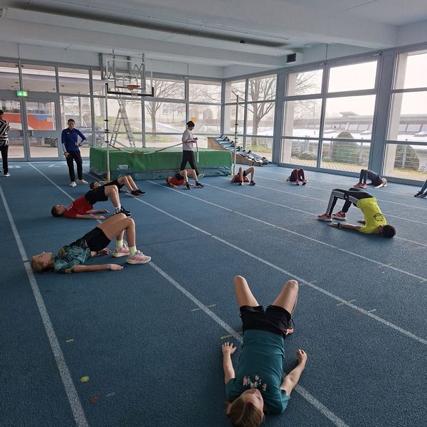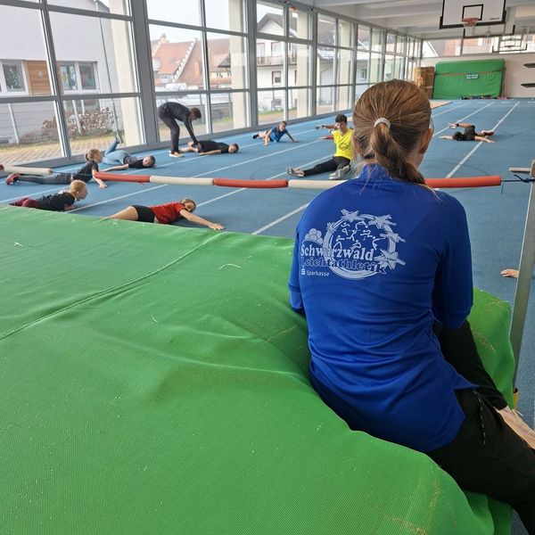 Im begleitenden Training zur Eröffnung konnten die jungen Athletinnen und Athleten aus verschiedenen Vereinen der Kreise Neustadt und Schwarzwald-Baar Erfahrungen im Hoch- und Weitsprung sammeln, nachdem sie sich vielseitig mit Basisübungen der Leichtathletik aufgewärmt hatten. Einige Athleten aus dem Regionalkader unterstützten Holger Urbainczyk bei seiner Arbeit. Ein Hauch von Olympia kam bei der Trainingsgruppe auf, als zu Beginn des Programms das Banner an einem sehr gut sichtbaren Platz in der Halle hochgezogen wurde. Auch die Ausrüstung mit Trainingskleidung durch die Sparkasse, langjähriger Unterstützer der Leichtathletikjugend im Schwarzwald, trug zur weiteren Motivation der Nachwuchsathleten bei.