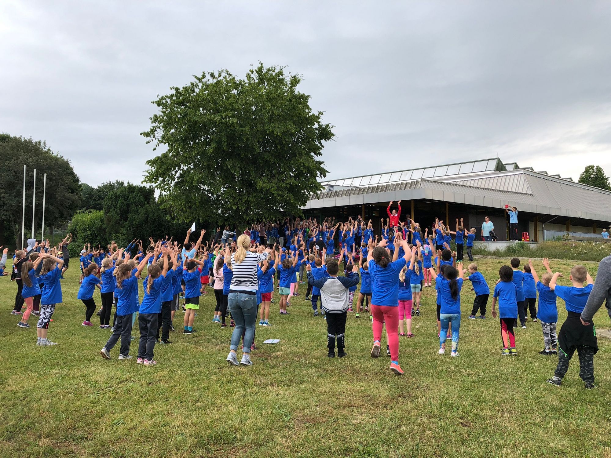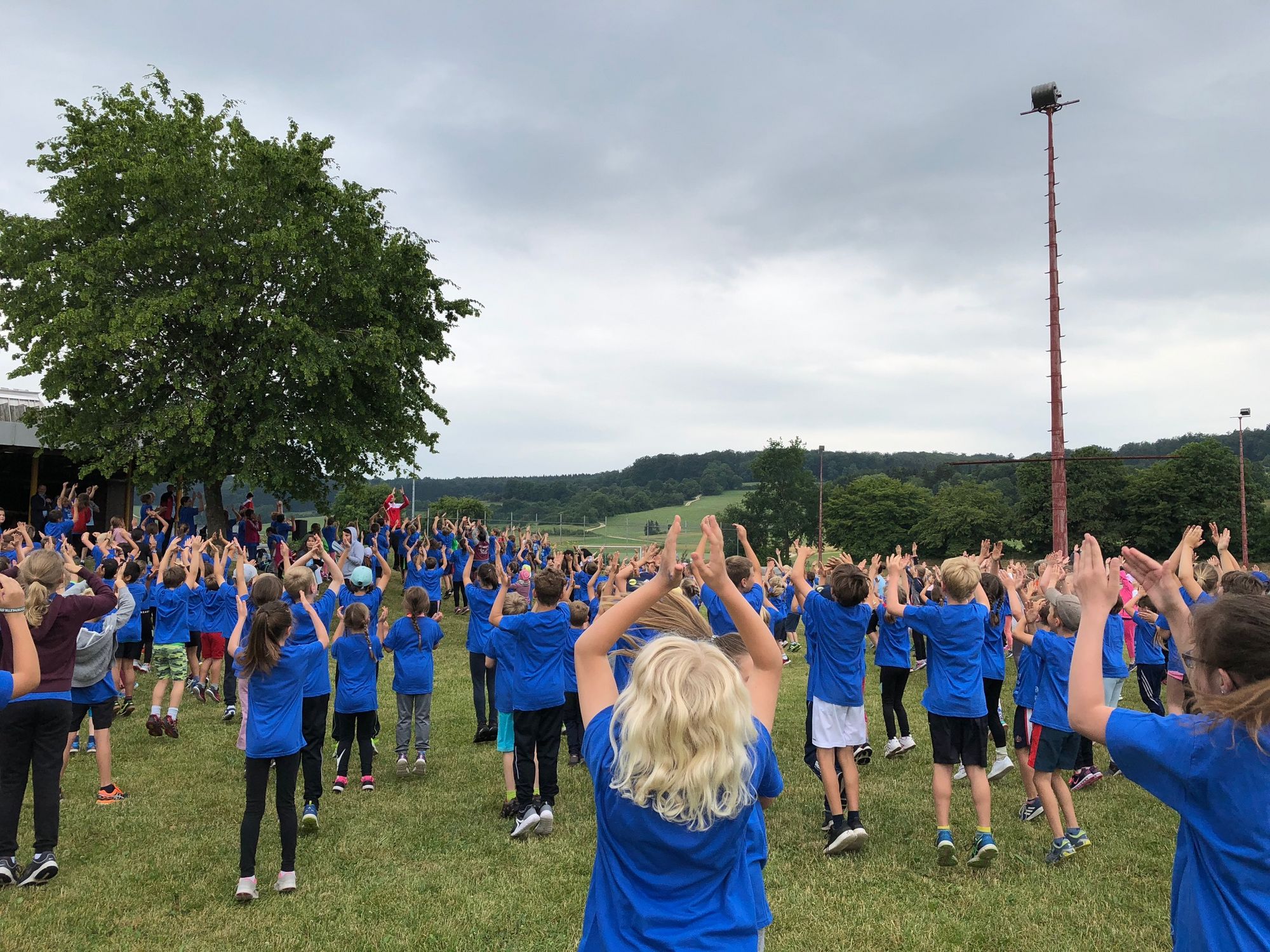 Wie es sich für einen richtigen Sporttag gehört, ging es mit einem gemeinsamen Aufwärmen los. Mit Laufen, Hüpfen, Klatschen und La-Ola-Wellen zu flotter Musik stimmten sich alle auf den bewegungsreichen Tag ein.
